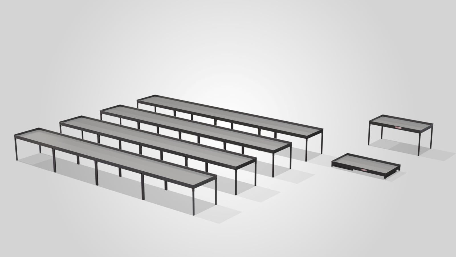 Özel imalat: Farklı ebat, yükseklik ve konfigürasyonlarda sehpa imalatı yapıyoruz. Projenize özel ölçü, çoklu sehpa hatları, sera içi yerleşim planları için bizimle iletişime geçin.